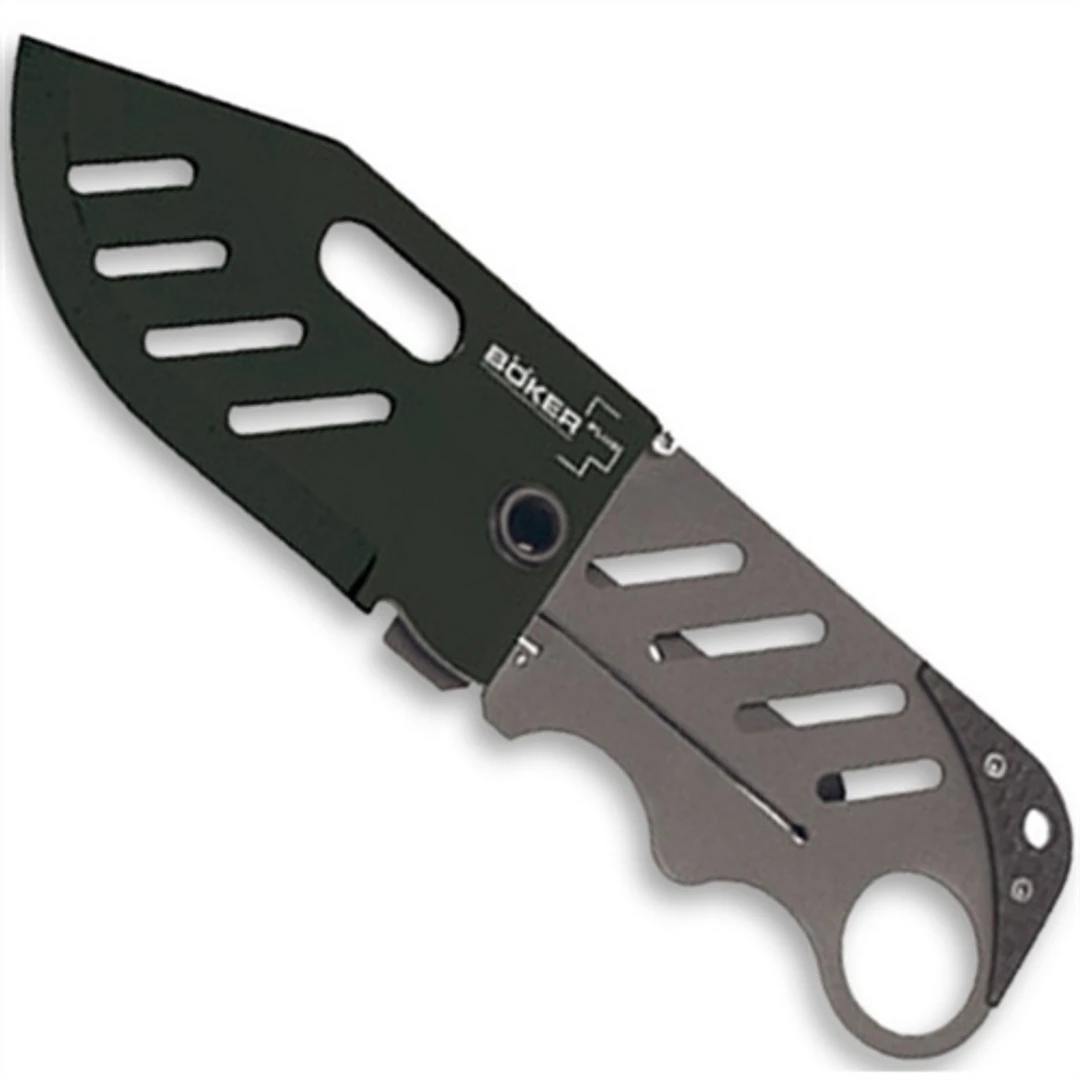The Boker Plus Credit Card knife is a John Kubasek designed compact folder that was designed last year but now offers a different blade finish. At just over an ounce in total weight, this knife boasts a frame lock design and the stainless steel blade operates on a ball bearing pivot and is deployed with the use of the enhanced thumb window. The unique and compact nature of this knife allows it to be carried in a variety of styles–from a compartment in a standard wallet, traditionally with the pocket clip or utilizing the included ball chain around your neck. The Boker Plus line of knives are designed in cooperation with knife experts worldwide and provide innovative knife concepts for every task. This model features a skeletonized stainless handle, a clip point style blade in a black finish and the deep carry pocket clip is statically designed for tip down carry only on the traditional side of the handle.