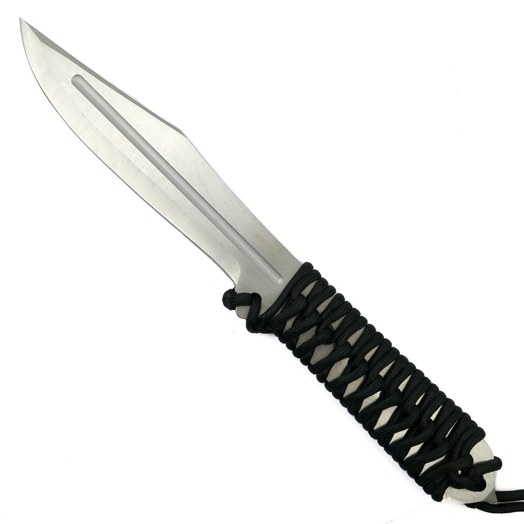Built of stainless steel with a paracord wrapped handle, this is an ideally balanced thrower. It features an impact point on the base of the tang.