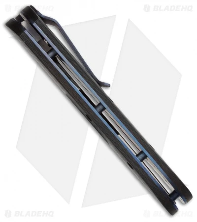 This model is based on the Exskelibur I, a collaborative custom design of Mike Skellern and Fred Burger. It has carbon fiber scales and a premium VG-10 stainless steel blade, marked for the 10th Anniversary. The Exskelibur is a true gentleman’s knife with a slim everyday carry design and quality features like the blue anodized titanium liner and contoured scales. The 440C stainless steel blade has a horizontal satin finish with a hollow grind. The protruding blade grind allows a convenient one-hand thumb opening, and acts as a thumb ramp when the blade is open. The reversible titanium pocket clip completes this everyday carry knife.