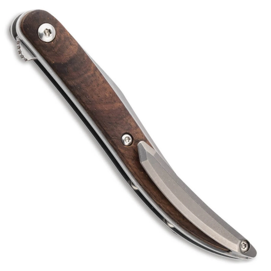 The Boker Plus Texas Tooth Pick is a flipper knife that will make you want to shout a loud “Yee-Haw”. This style of knife was widespread during the 19th century, great for a variety of tasks. This reinterpretation of the style brings with it innovation and premium quality. The blade of this knife is made of VG-10 stainless steel with a classy satin finish. This blade is paired with handle scales made of exquisite cocobolo wood and is reliably locked with a liner lock, making it safer and easier to use for everyday chores. This excellent knife brings a tough of the Wild West to your everyday carry.